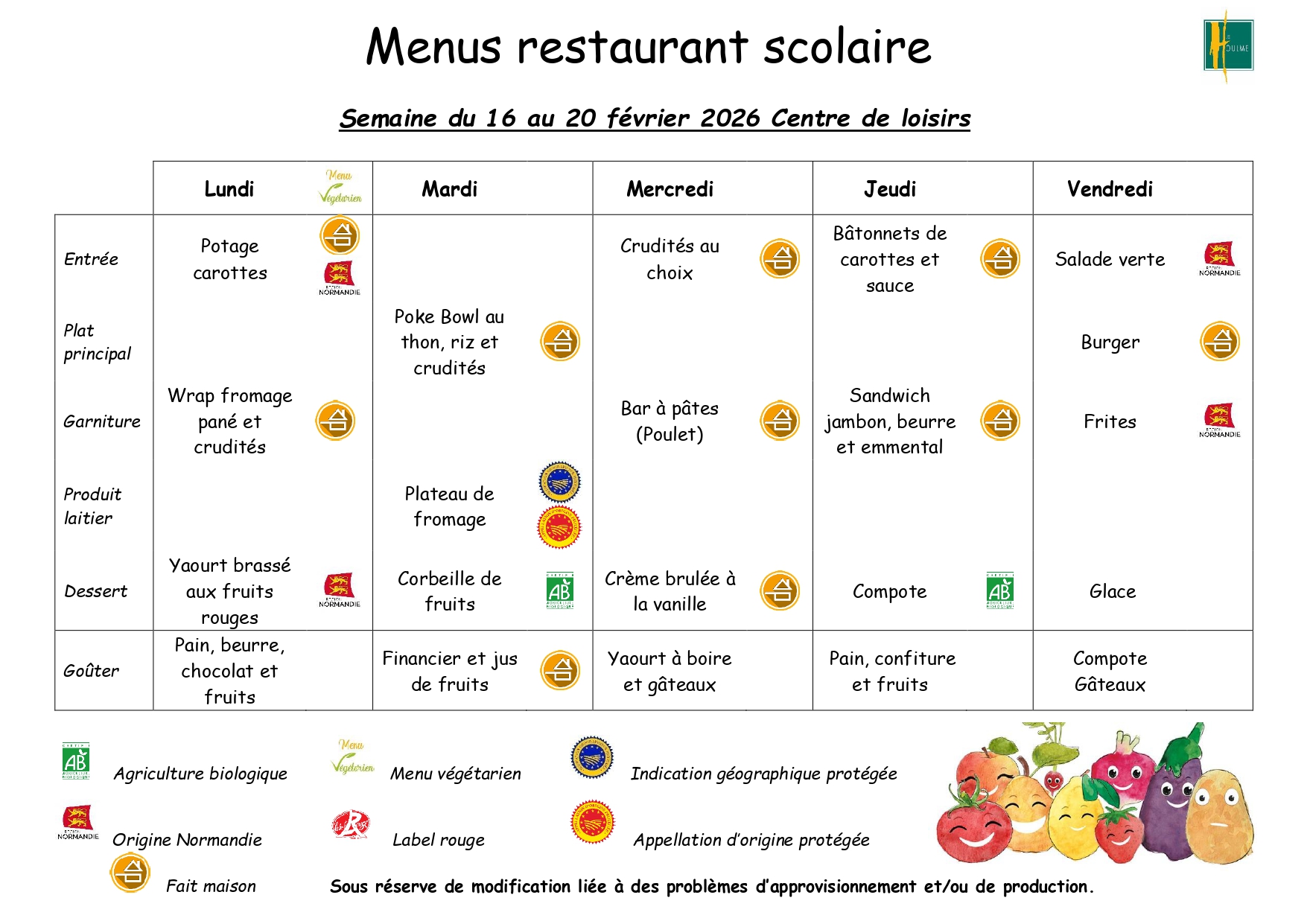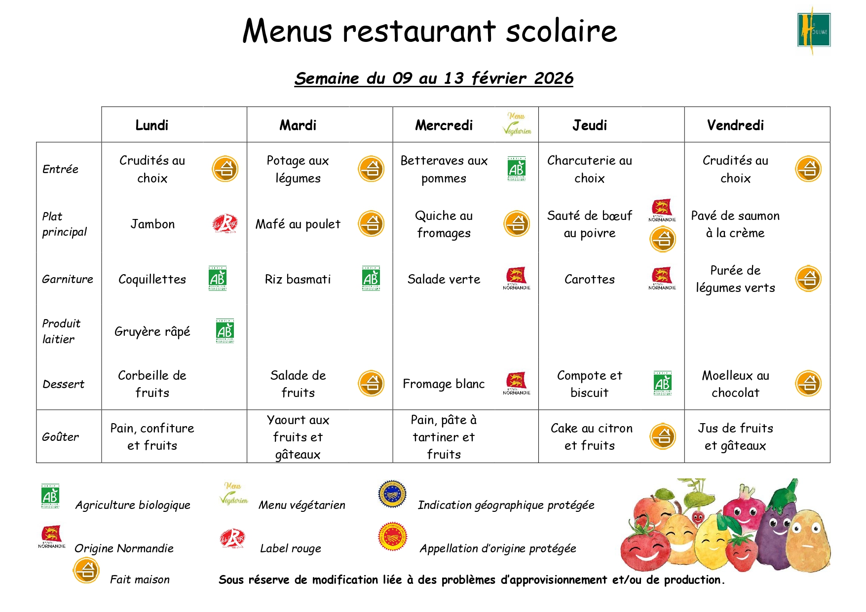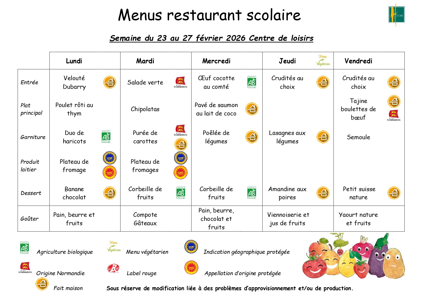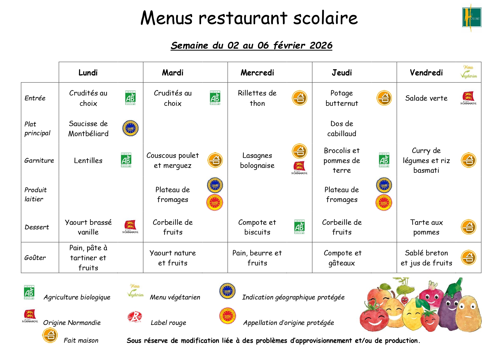 Menus cantine