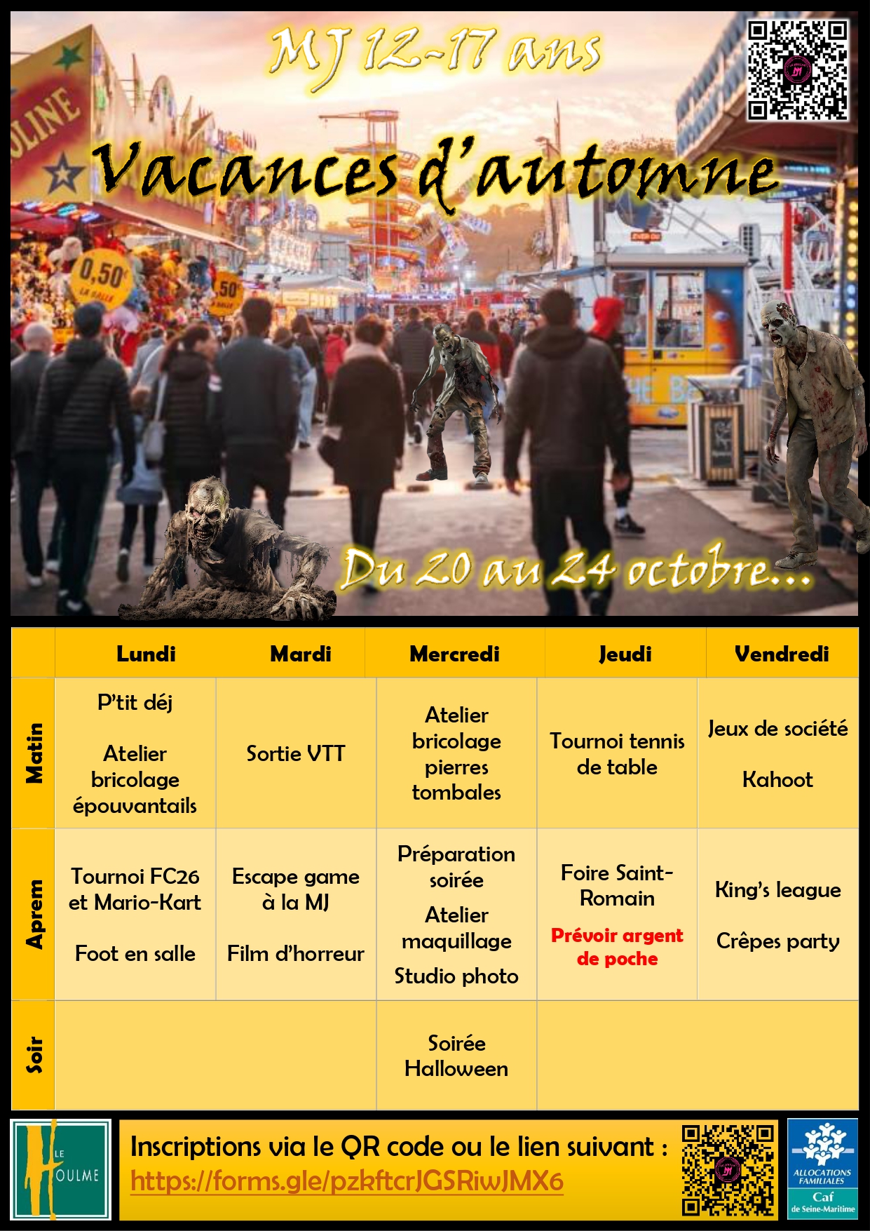La maison des jeunes sera ouverte du 20 au 24 octobre, découvrez le planning des activités...