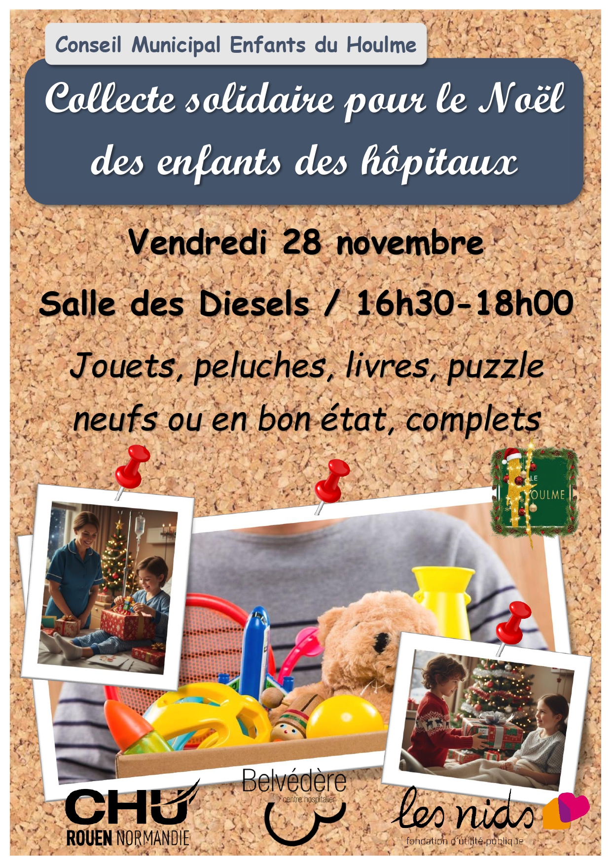 Collecte de jouets au profit des enfants hospitalisés le vendredi 28 novembre salle des Diesels, à l'initiative des enfants élus du CME.